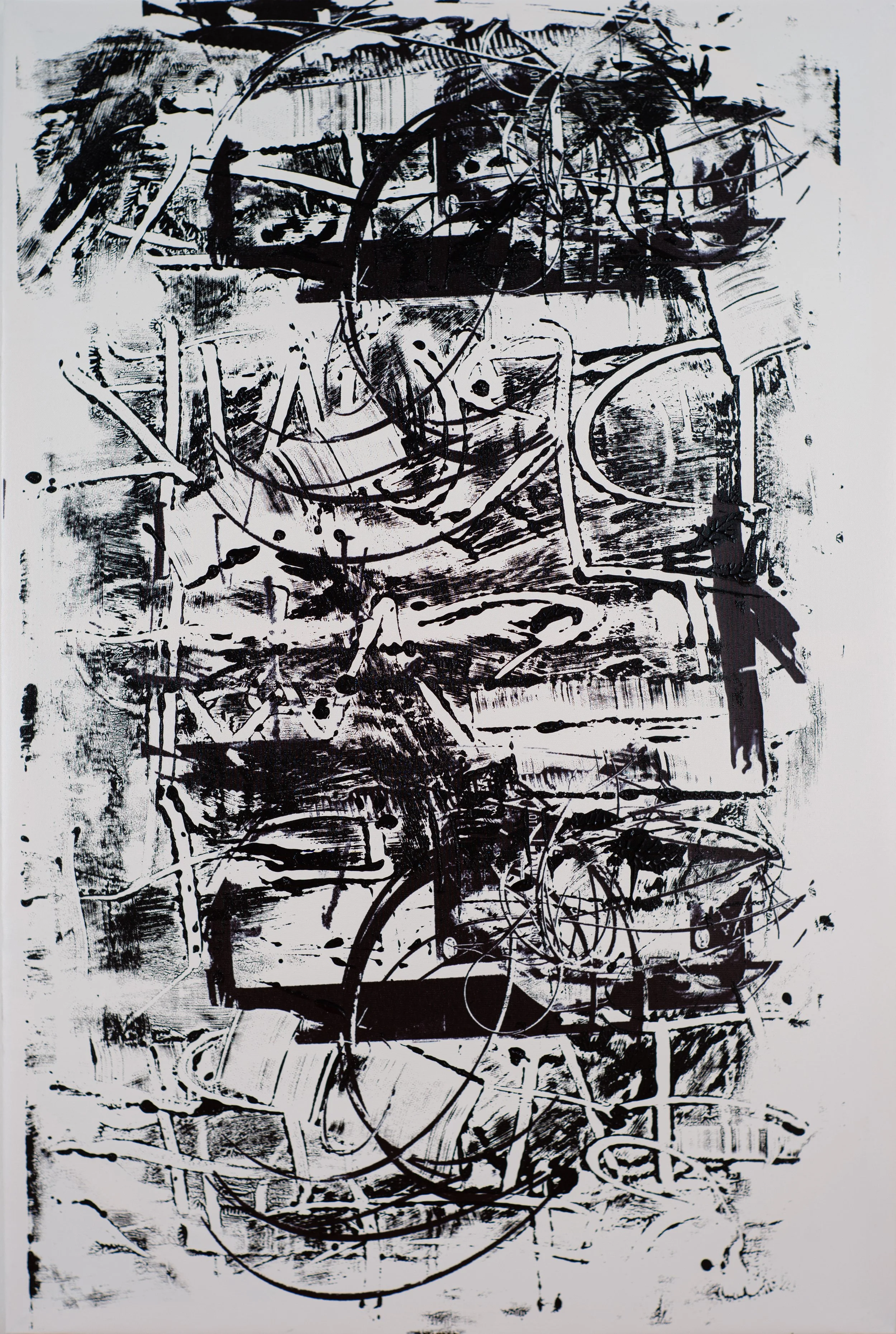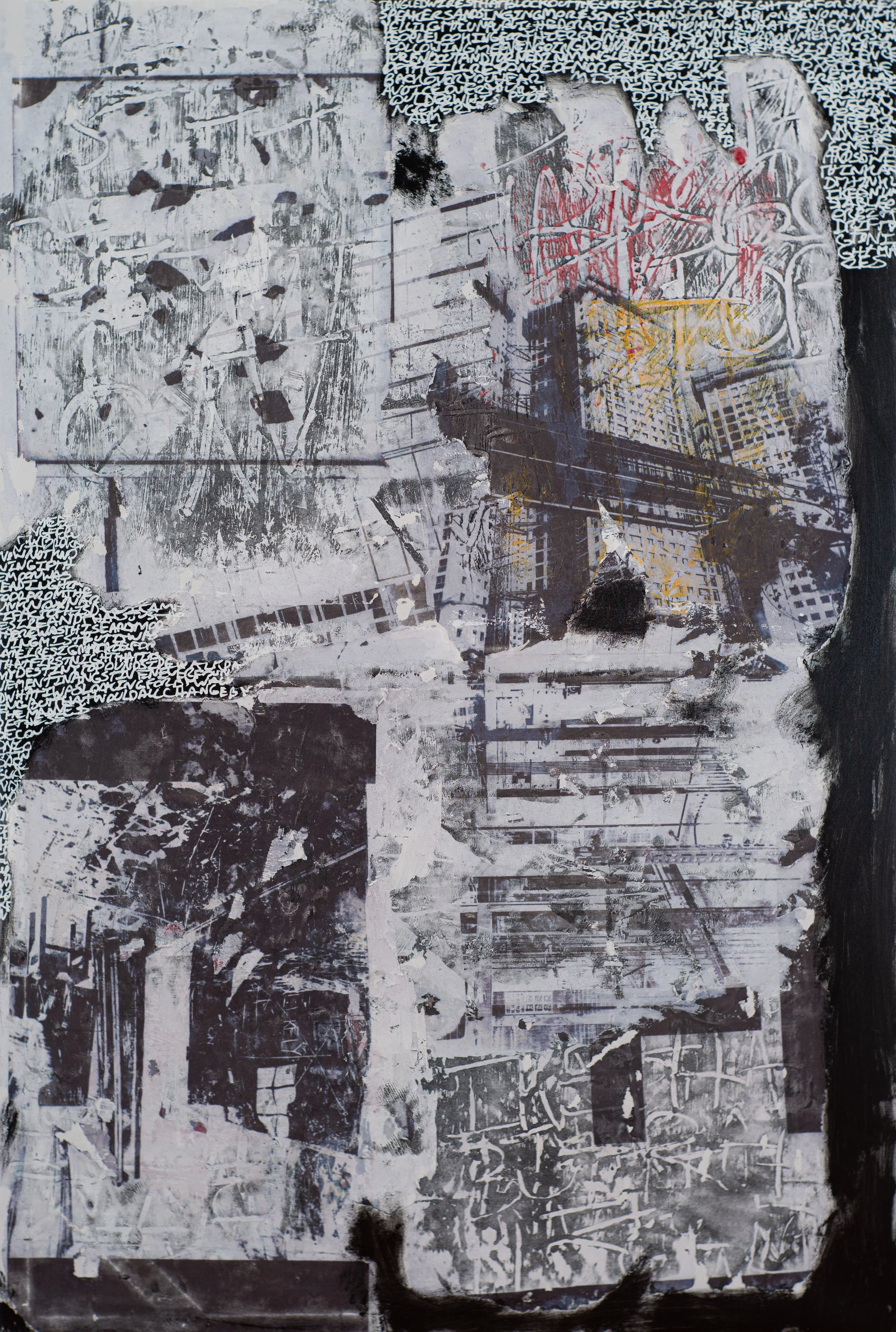Sidewalk 04, 2025, ink transfer and monotype acrylic on canvas - 80 x 120 x 4 cm