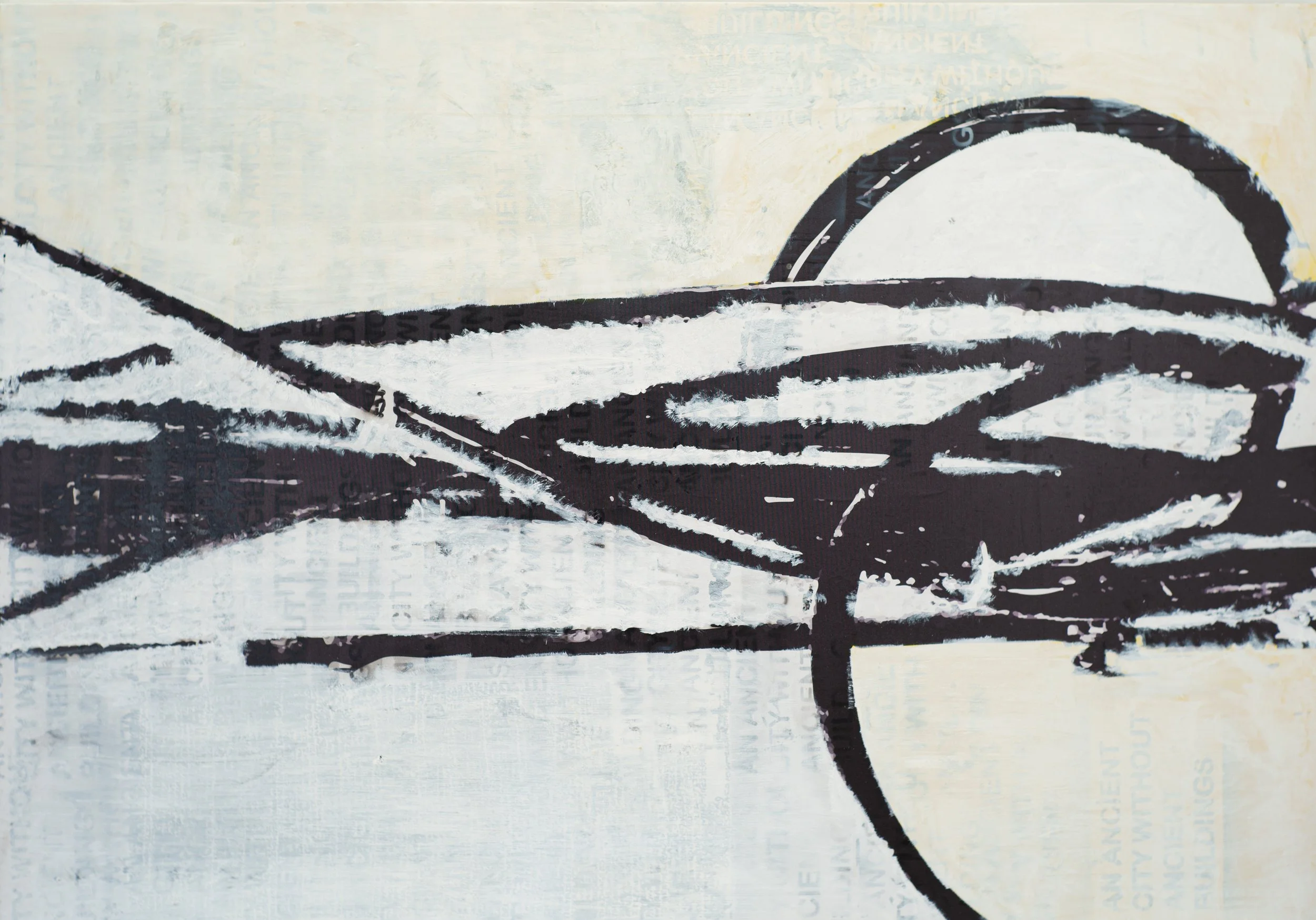 Semiotic Space 02, 2025, Ink transfer and acrylic on canvas - 80 x 120 x 4 cm