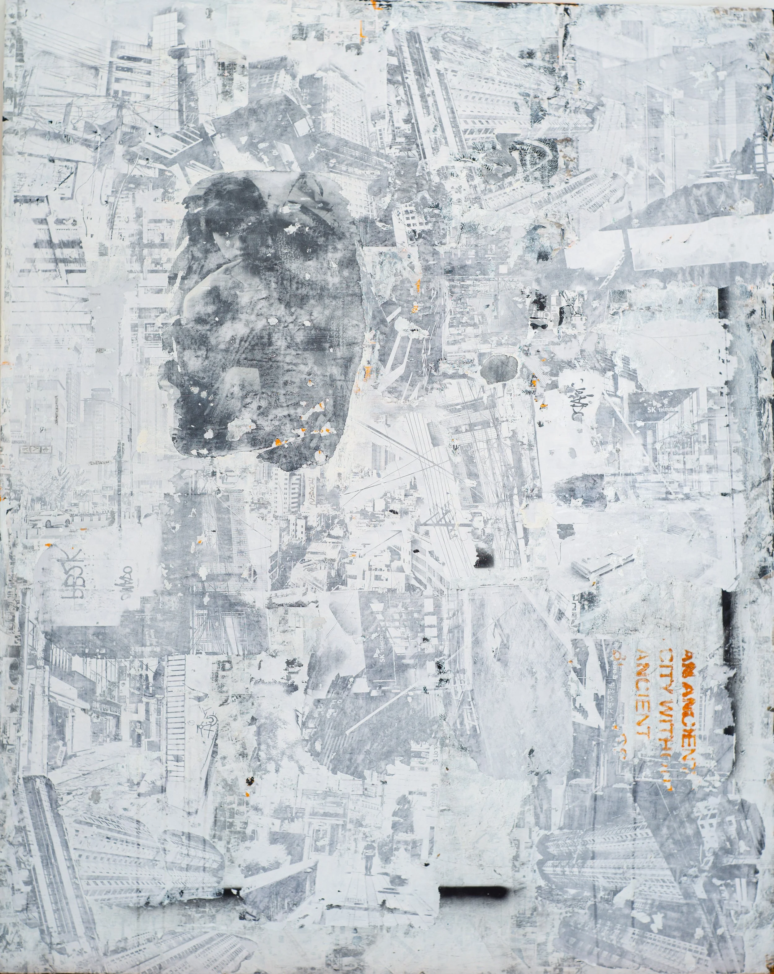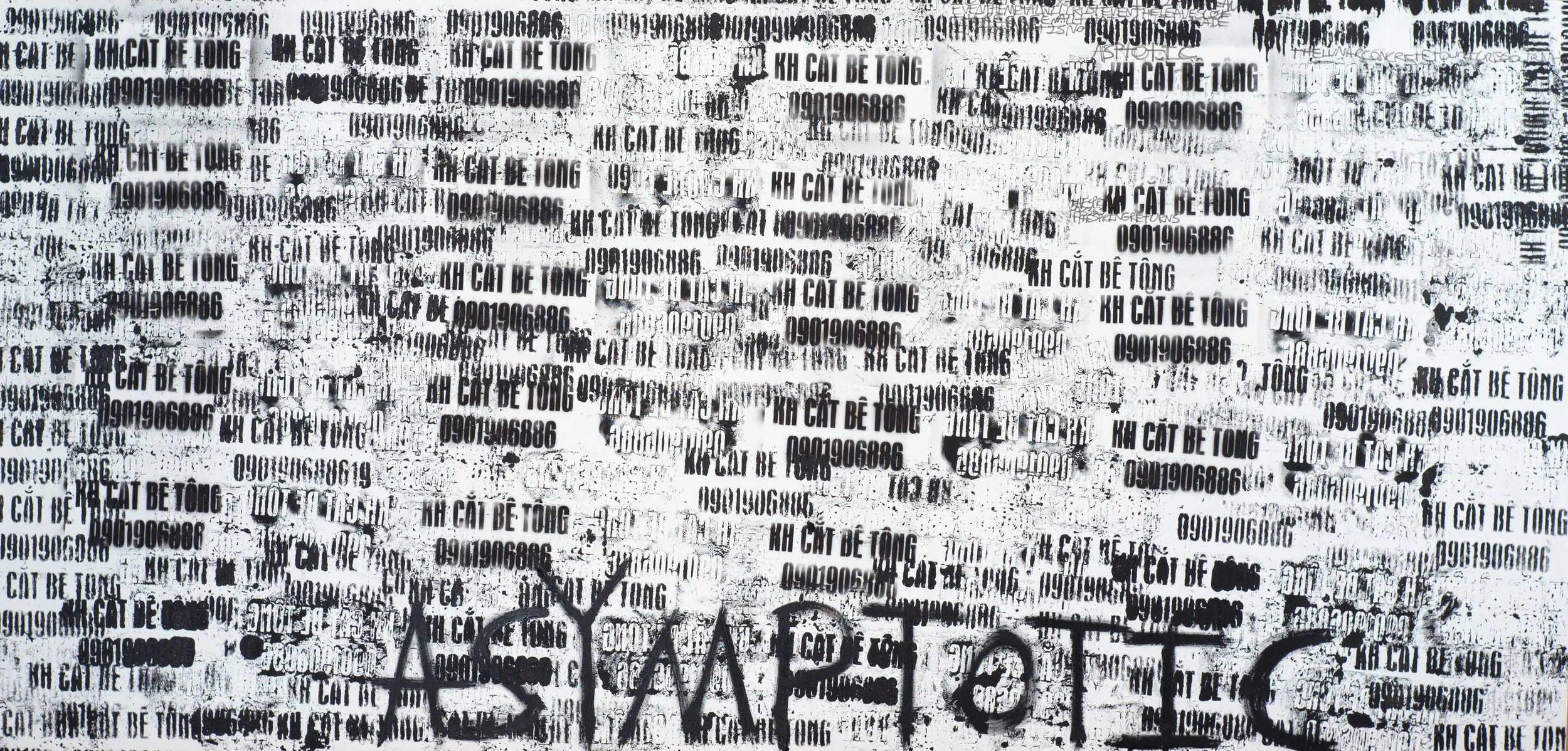 Be Tong, 2025, Collage, Industrial Paint and Ink on Canvas - 150 x 300 x 4 cm
