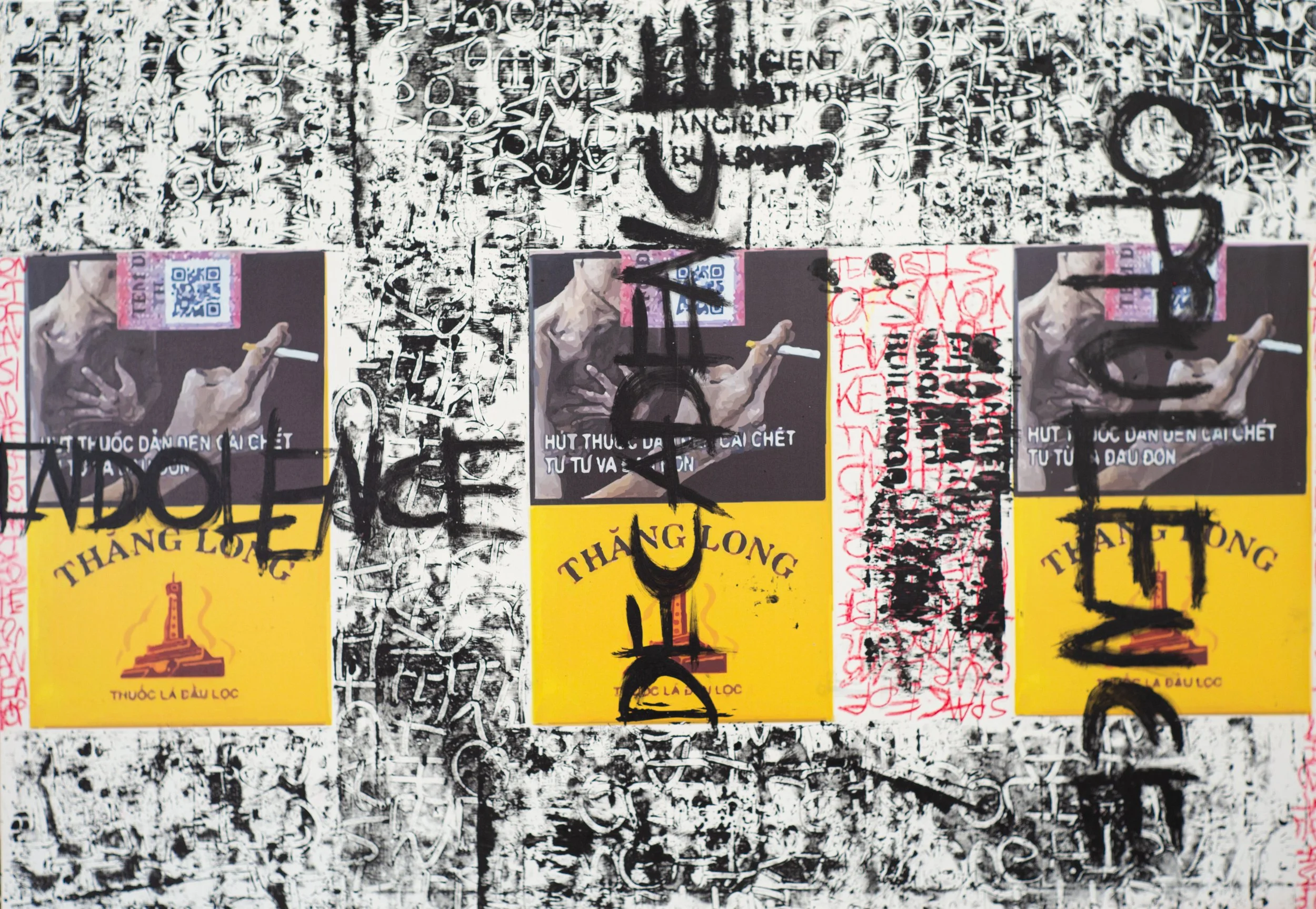 Thang Long, 2024, Ink Jet, Pastal, and Industrial Paint on Canvas - 150 x 170 x 3 cm