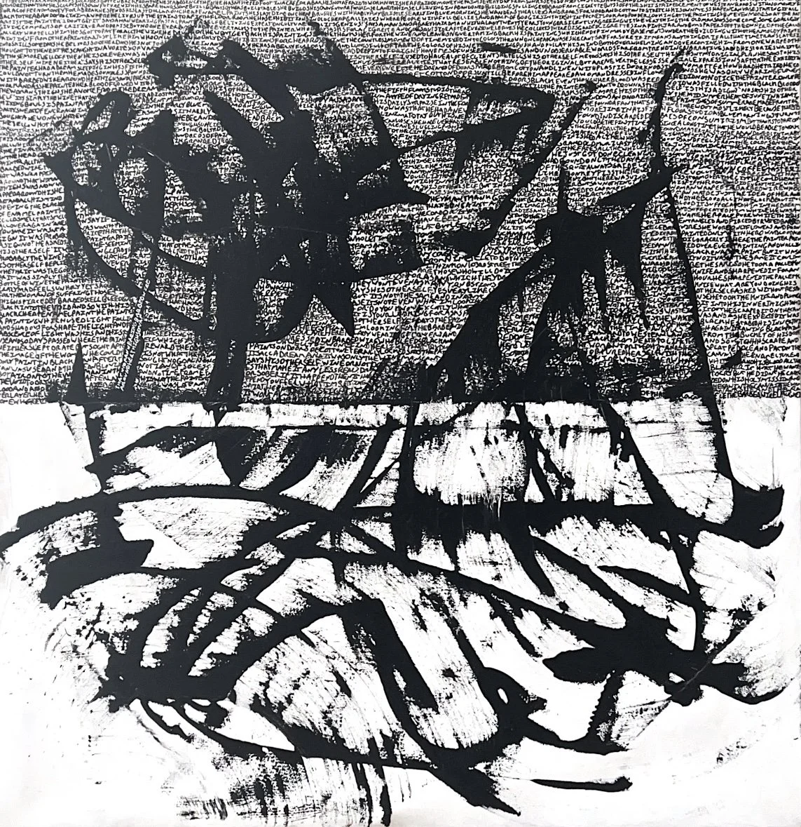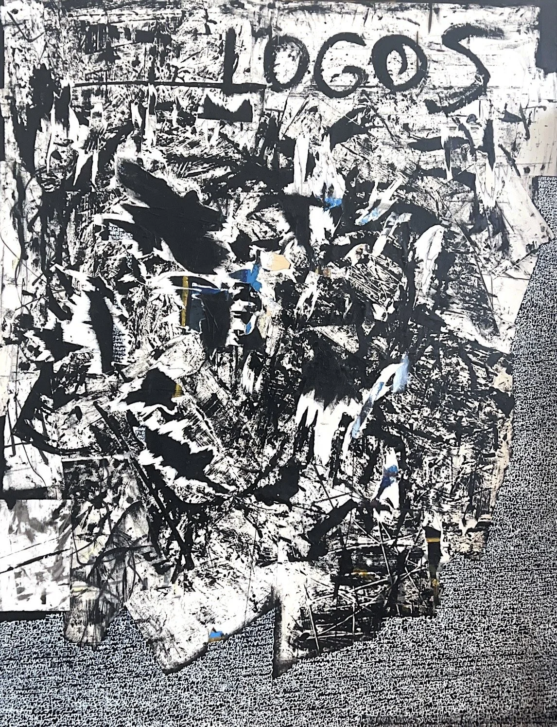 Logos, 2023, Collage, Industrial Paint and Ink on Canvas - 200 x 200 x 4 cm