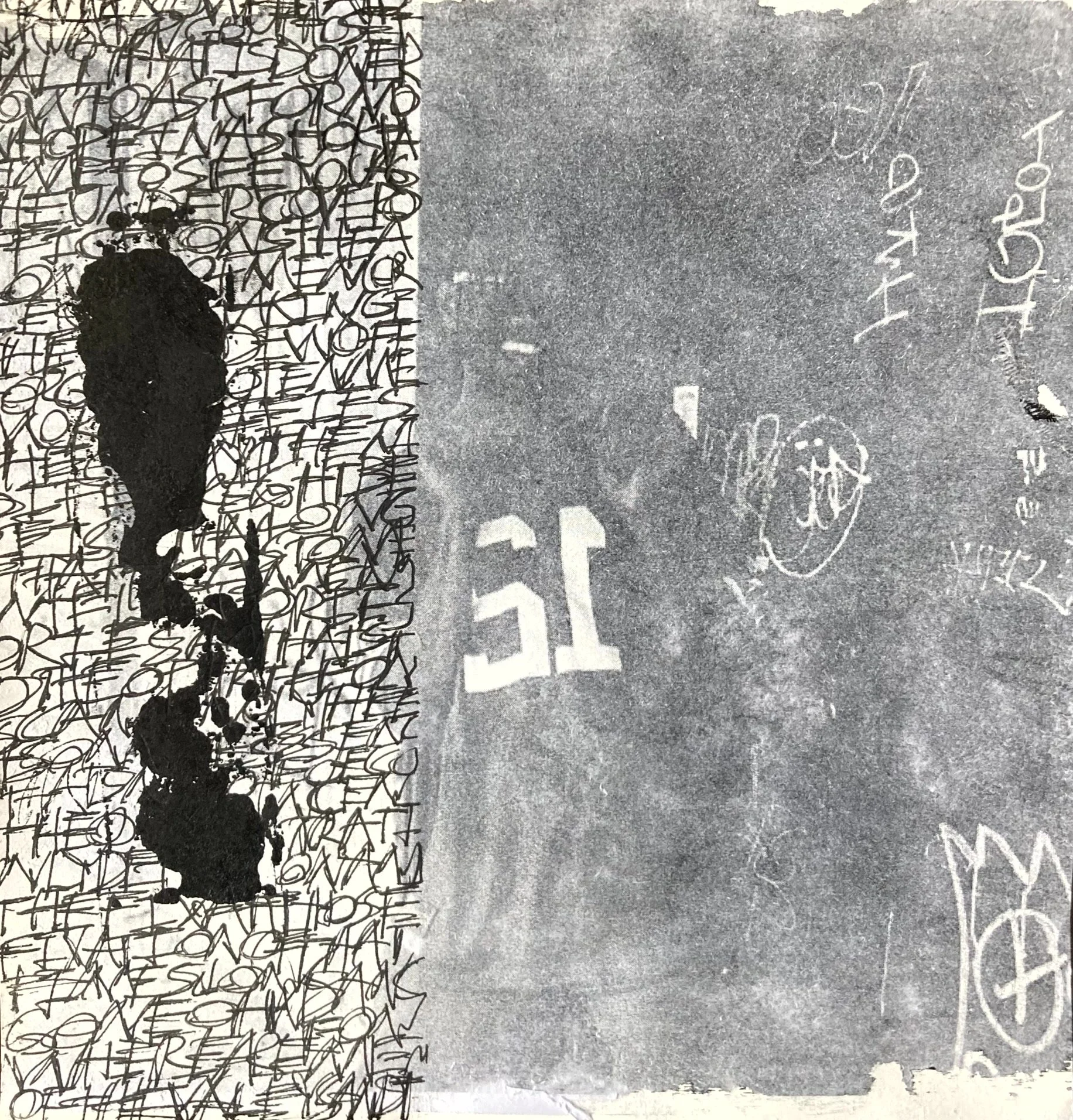 Bad Odds, 2020, Ink, ink transfer and acrylic on paper - 20 x 20 cm